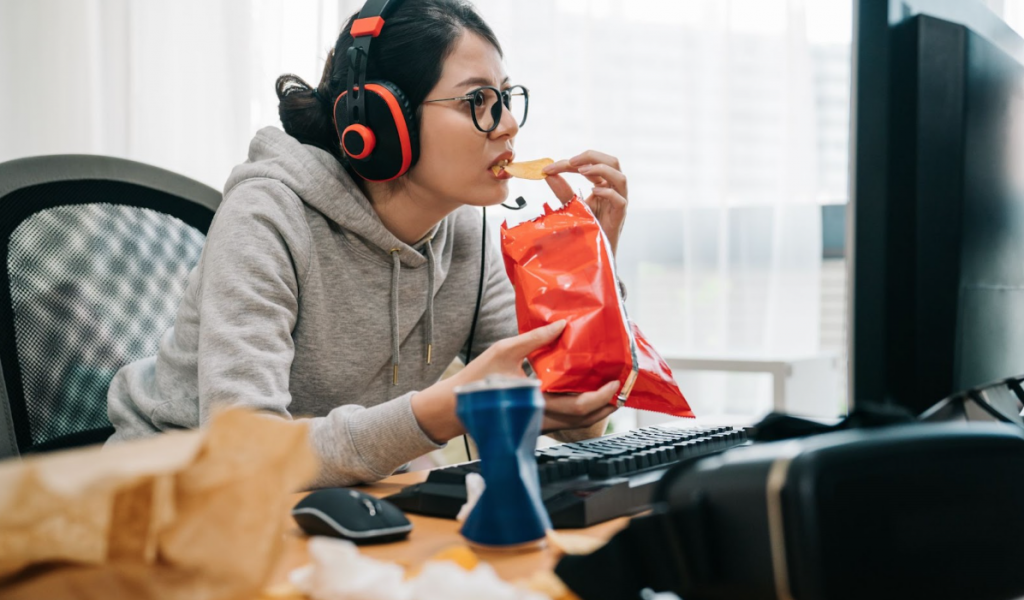 Imagine que tu es devant ton écran, tu es à fond dans ton jeu et tu apprécies le moment. Stop, regarde un peu autour de toi, qu’est-ce que tu vois ? Des chips, du soda, des sucreries ? Ton cerveau est tellement heureux et accaparé par le jeu que tu ne te rends même pas compte de ce que tu manges. Tes habitudes alimentaires sont bouleversées et cela pourrait entrainer des carences à force de manger principalement des snacks, voire de sauter des repas.